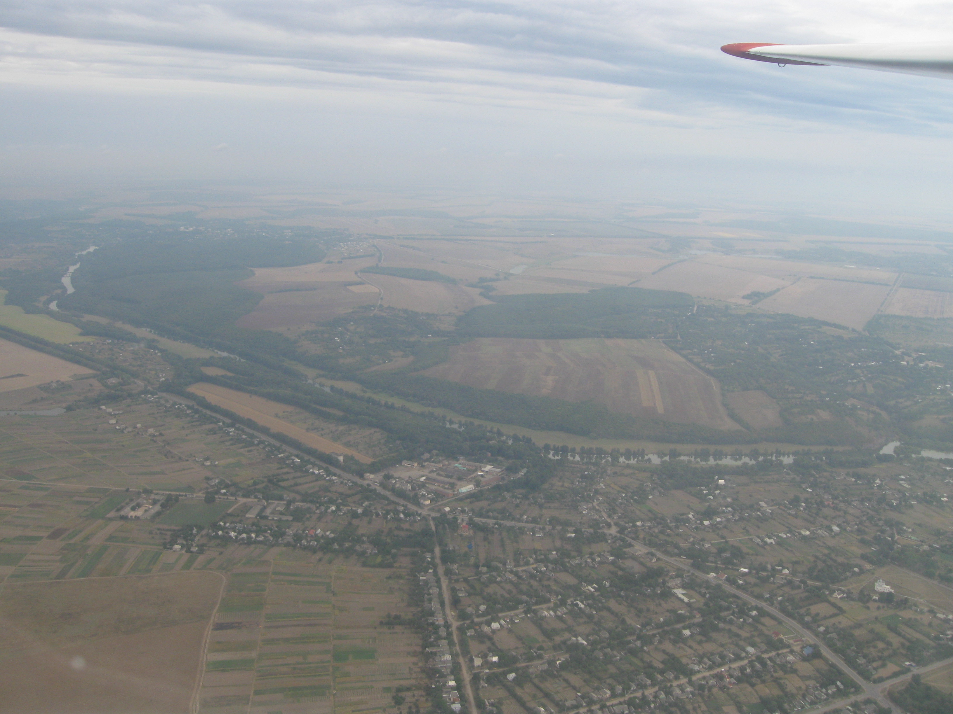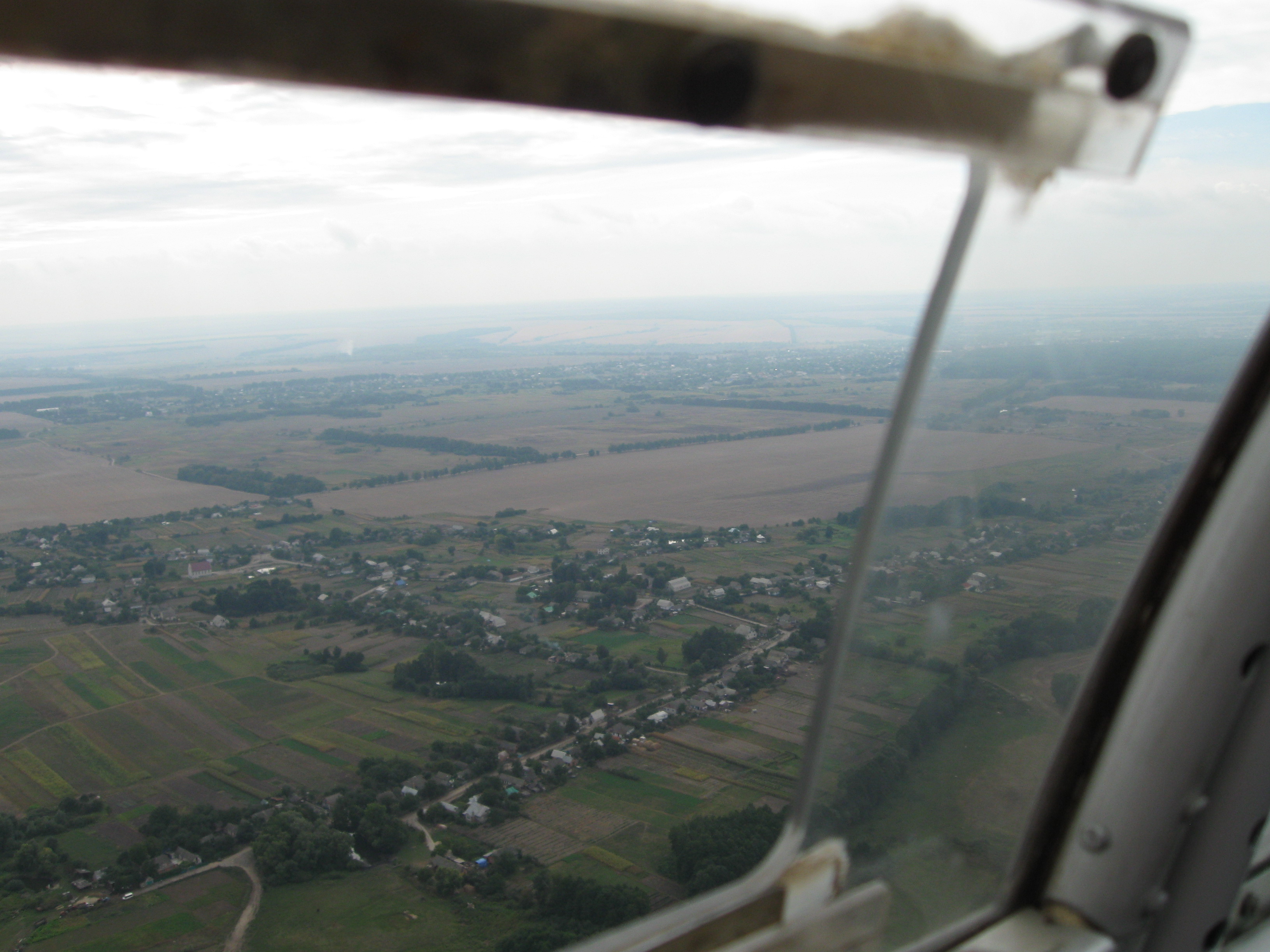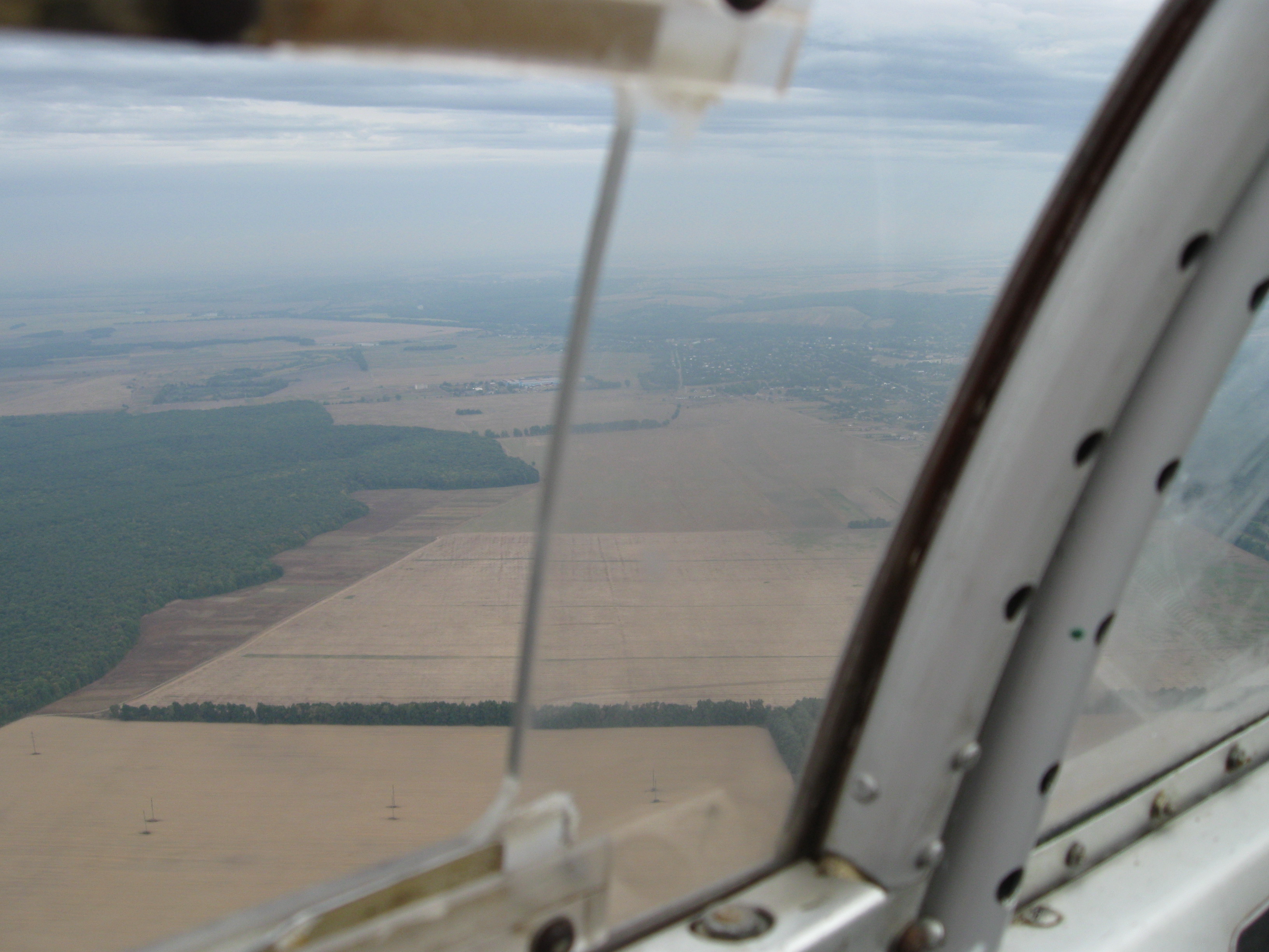 По просьбе инструктора, во избежание травм и повреждений фюзеляжа при выполнении фигур пилотажа (мертвая петля, пикирование, управляемая бочка, спираль, ...) фотоаппарат был спрятан, поэтому все фотографии в воздухе были сделаны исключительно в начале при наборе высоты.